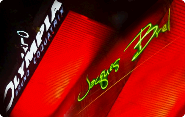 Logo voor de website ter ondersteuning van de ultieme Tirion/Houtekiet biografie over Vlaams chansonnier Jacques Brel.Design doel: Het logo moest iets van een signatuur heben, maar ook iets van neon lights. Dit zonder poppy 'glitter en glamour', maar met de chique van chanson en Olympia, Parijs!