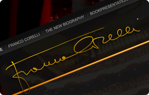 Design doel: De site moest een 'authorized' aura hebben. waarvoor Corelli's iconische handtekening zich uitstekend leende.