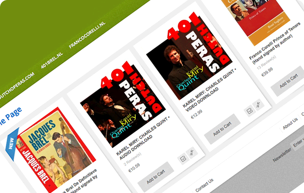 Design doel: De site combineert de sales van verschillende 401 sites teneinde slechts 1 betaalmodule te hoeven gebruiken. Het doel op zich: betrouwbare uitstraling richting betalingsmodule.